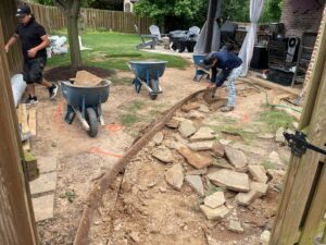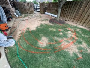 - Clear the designated area of any existing vegetation, plants, or grass.